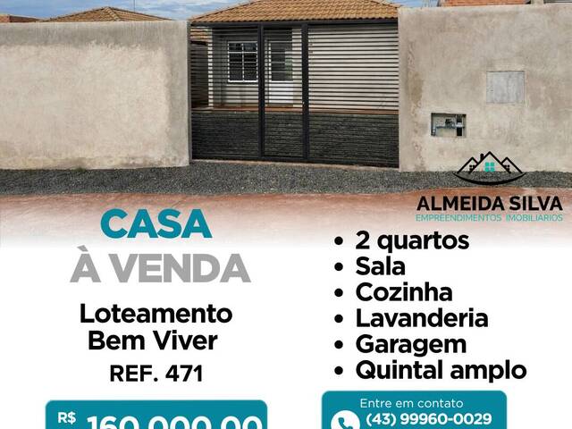 CASA À VENDA - LOTEAMENTO BEM VIVER